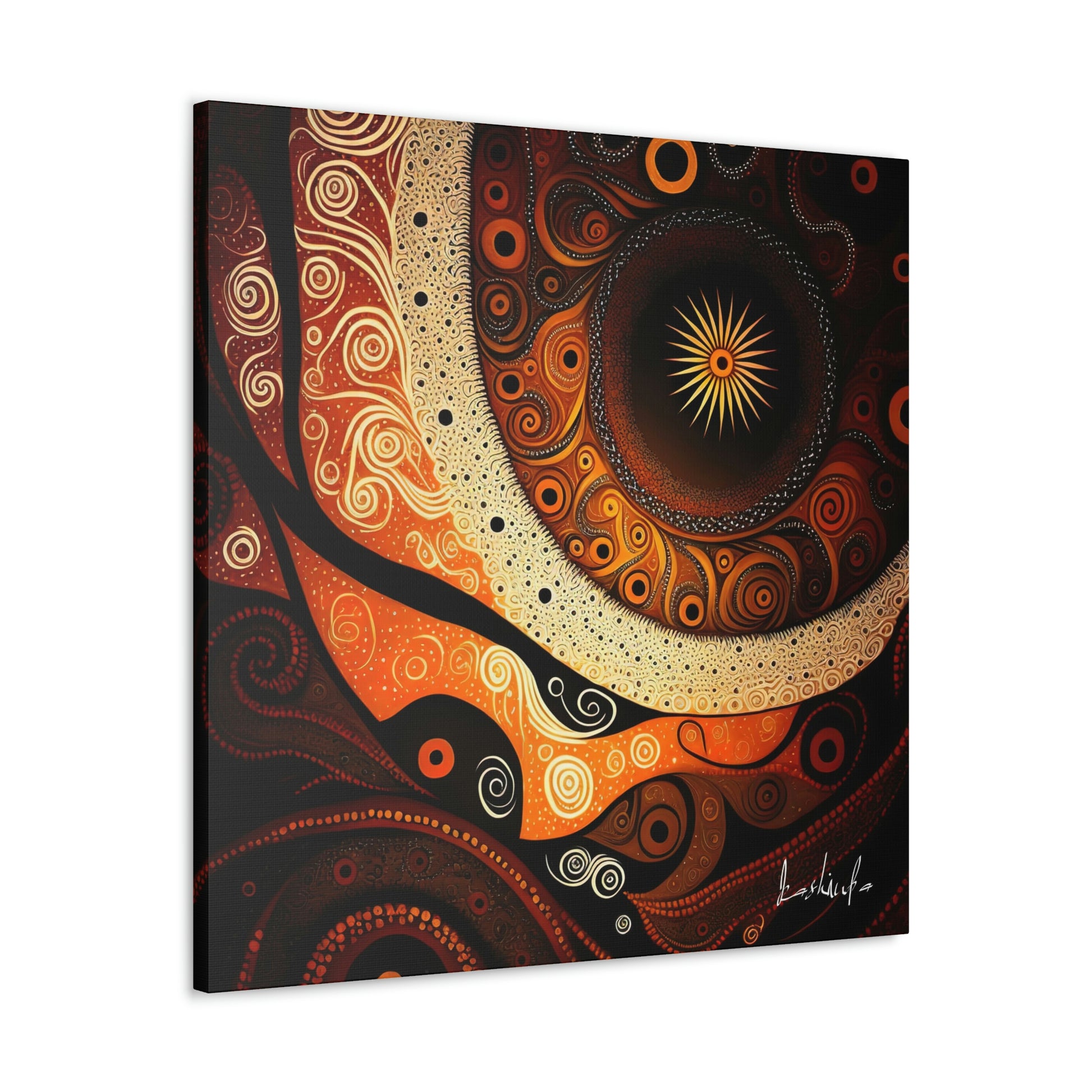 "The Dark Dreaming" is a thought-provoking and visually stunning work of art that captures the essence of the indigenous culture and their deep connection to the land.