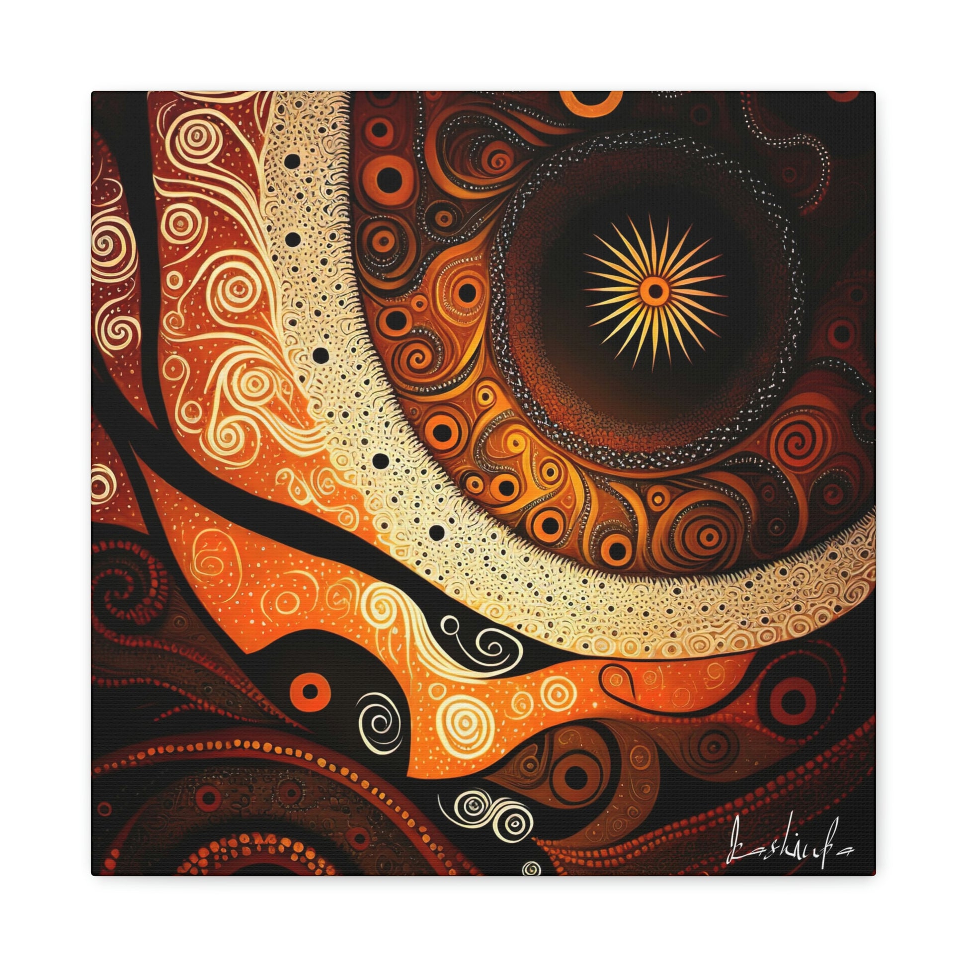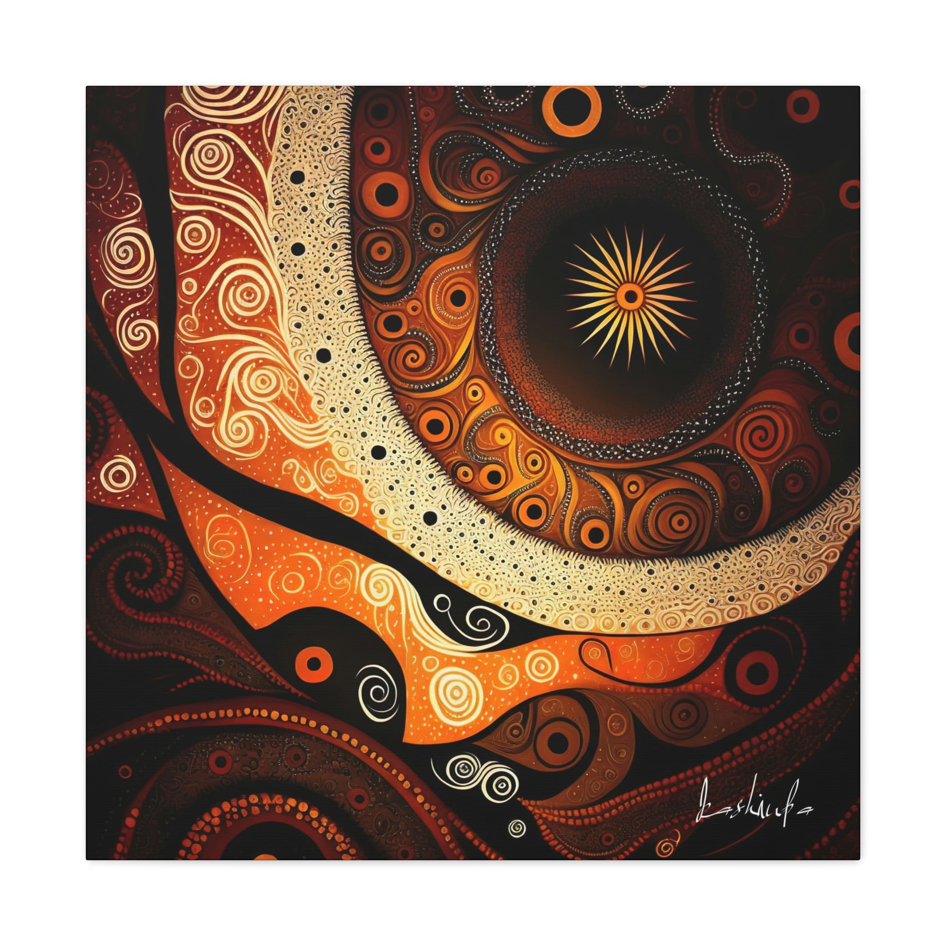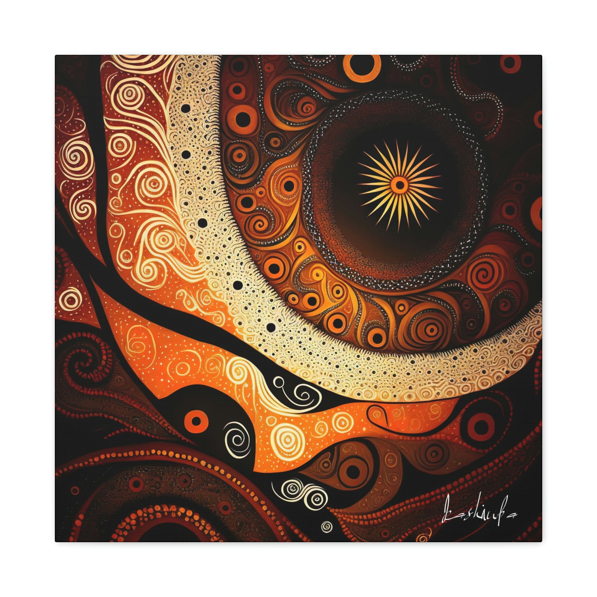 "The Dark Dreaming" is a powerful and evocative piece of Aboriginal art that explores the ancient cultural beliefs and traditions of the indigenous people of Australia.