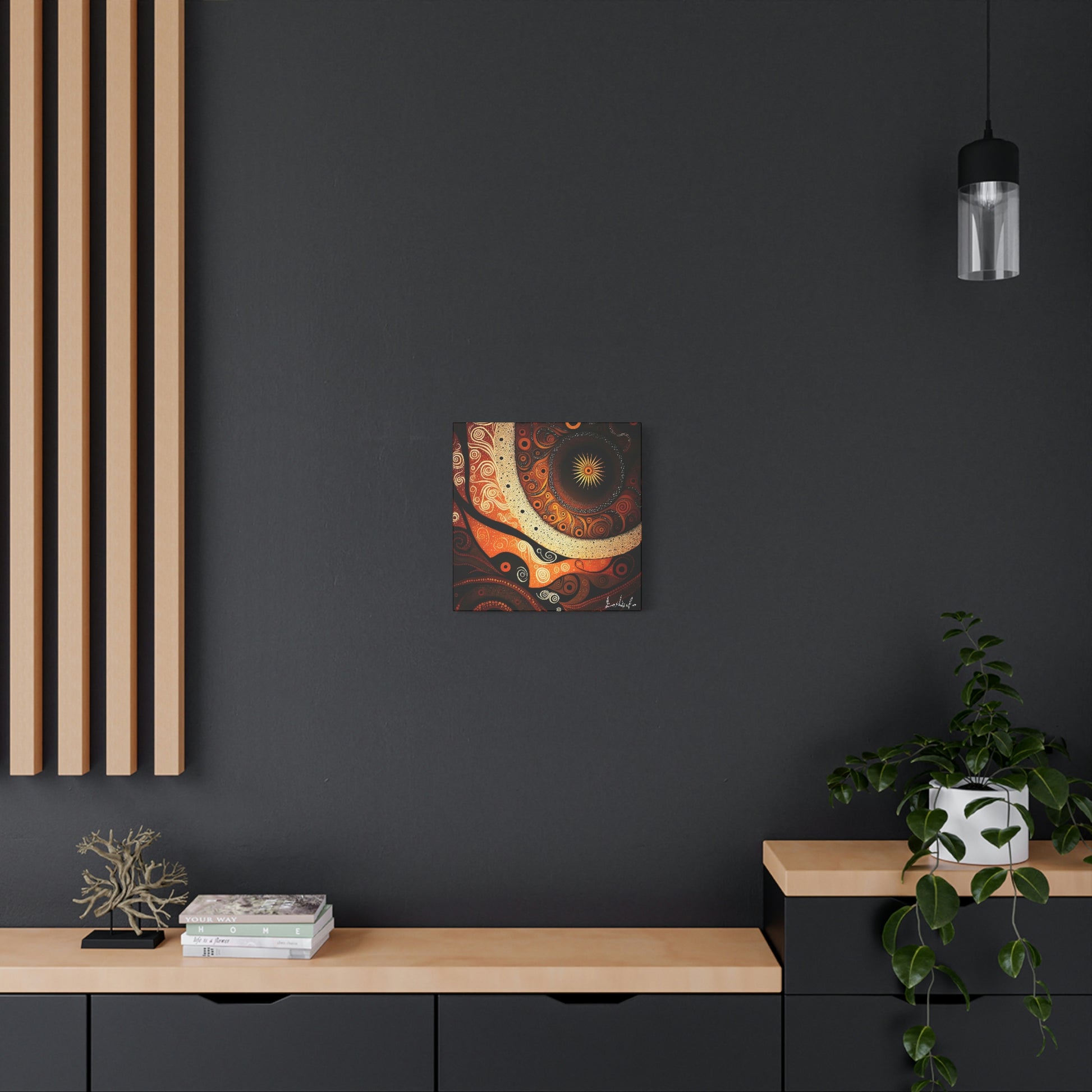 Wrapped around the sturdy New Zealand Pinewood frame, this canvas is made from a high-quality polycotton material with a semi-gloss satin finish. Setup is super-swift—it already comes with a self-assembly hanging kit.